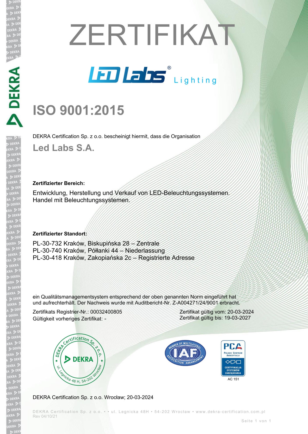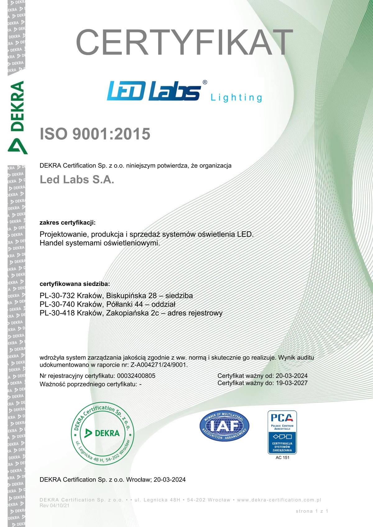 Z przyjemnością informujemy, że LED Labs S.A. uzyskała certyfikat ISO 9001, potwierdzający nasze zobowiązanie do doskonalenia jakości produktów i usług.